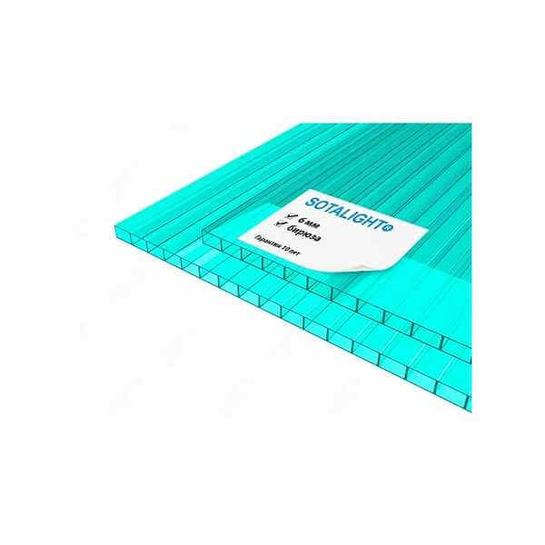 Сотовый поликарбонат 6 мм SOTALIGHT бирюза 2100х6000 мм