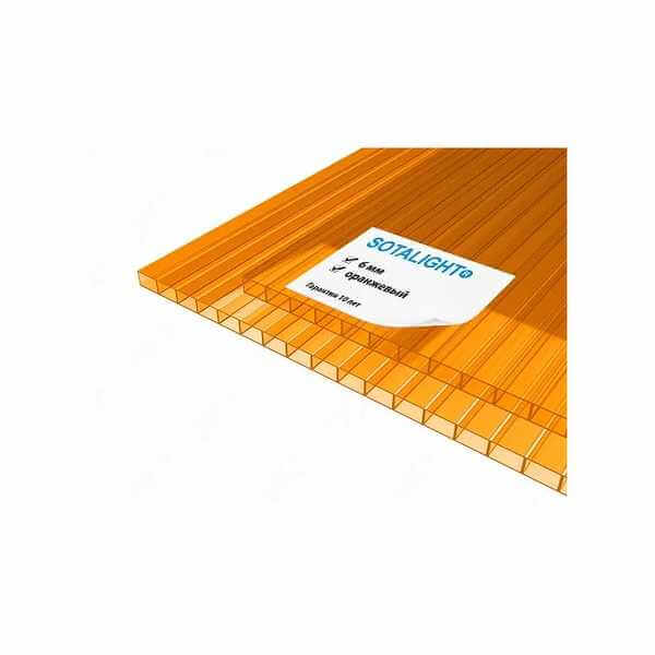 Сотовый поликарбонат 6 мм SOTALIGHT оранжевый 2100х6000 мм