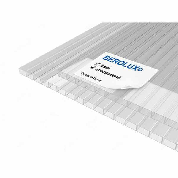 Сотовый поликарбонат 8 мм BEROLUX прозрачный 2100х6000 мм