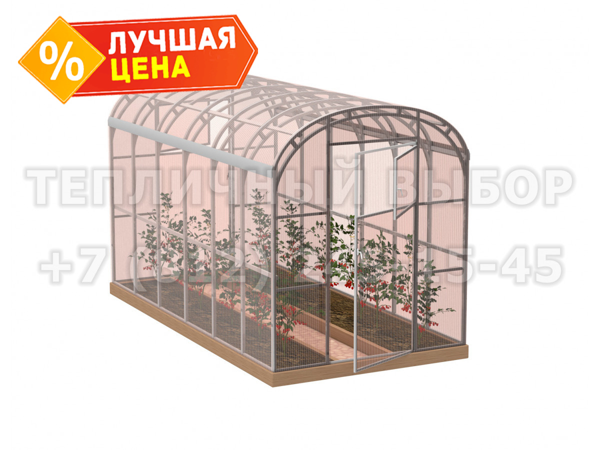 Теплица из поликарбоната-фито Усиленная Прямостенная 2,1х4 h=2.1 м профиль 20х40 мм