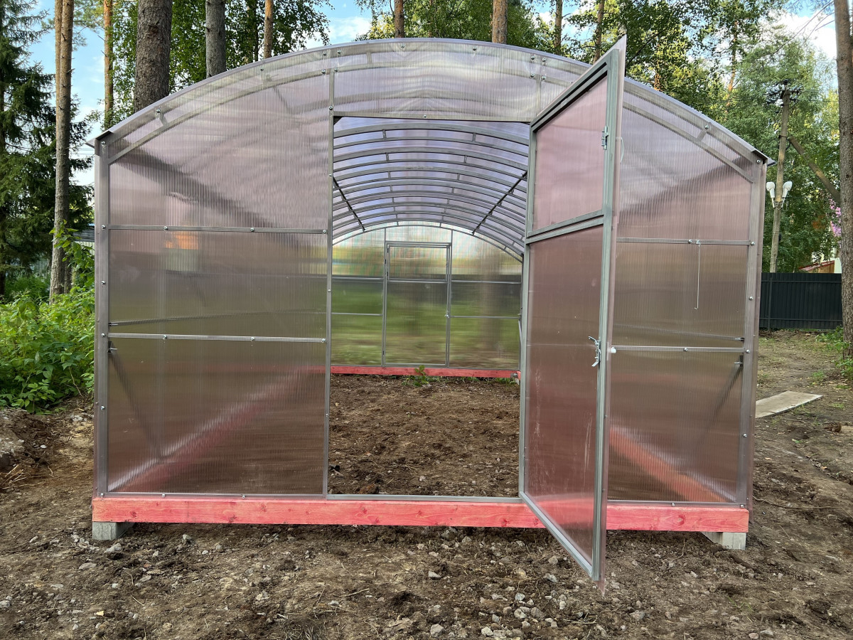 • практичная конструкция: 2 двери и 2 форточки обеспечивают легкий доступ в теплицу и ее проветривание. Размер дверей 171х89 cм, размер форточек в дверях 48х83 см;