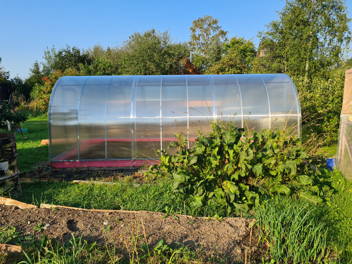 • поликарбонат толщиной 4 мм (в транспортном состоянии свёрнутые в рулон листы имеют диаметр до 80 см и длину 2,1 м)
