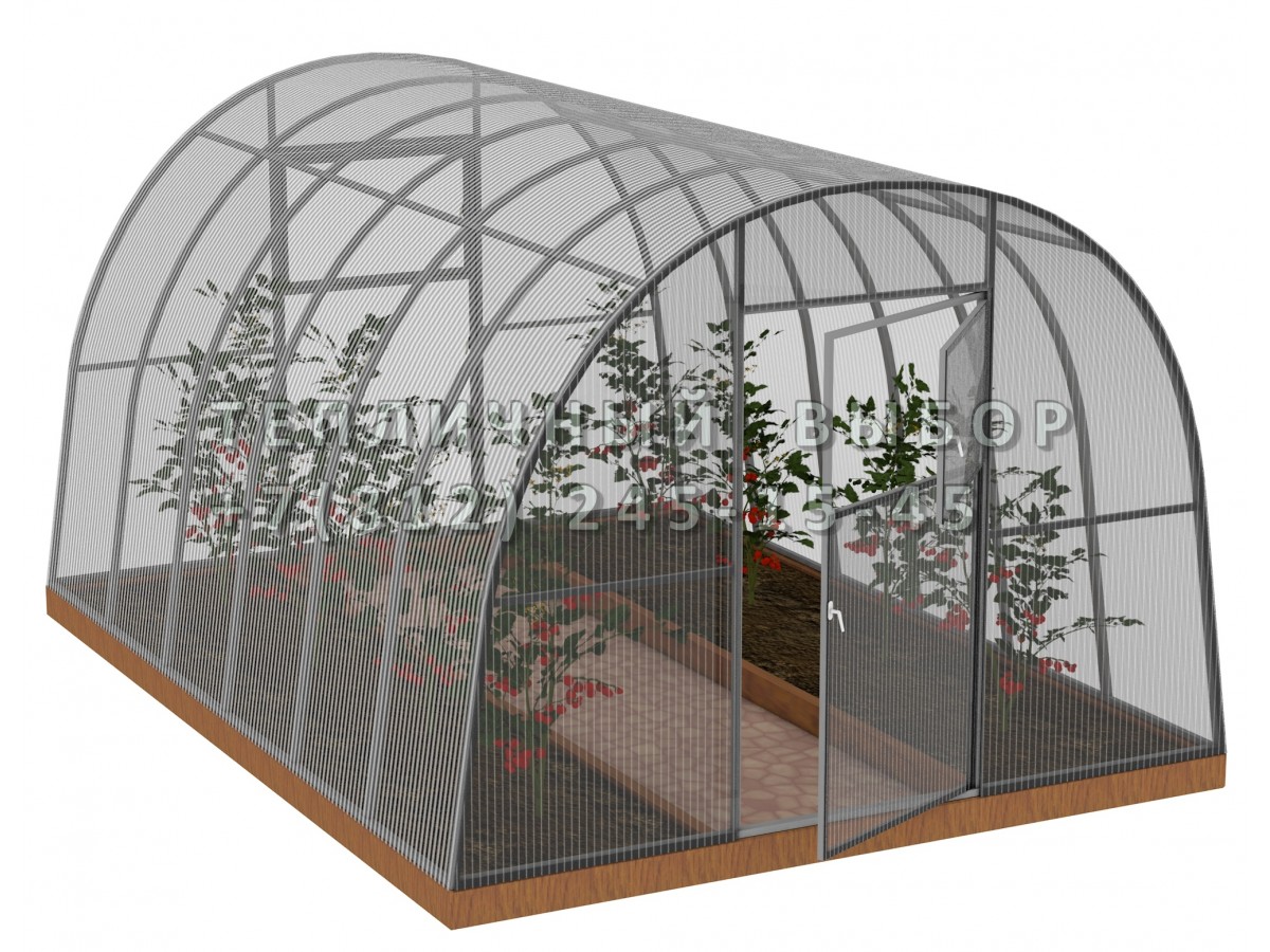 • надежная и долговечная конструкция за счет частой установки дуг в теплице (междуговое расстояние 65 см) и прочной профильной трубы (20х40мм)