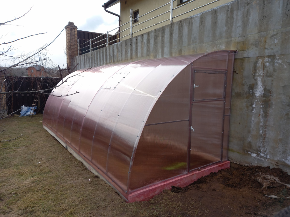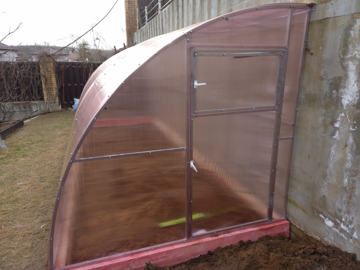 Теплица из поликарбоната Усиленная Пристенная 2,3х4 h=2.1 м профиль 25х25 мм