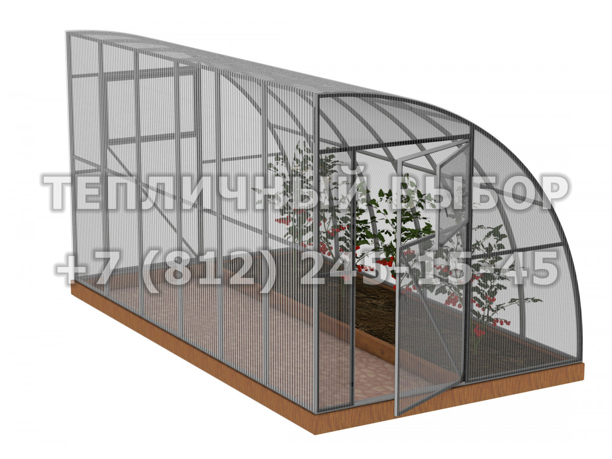• практичный каркас с дверьми и форточками в каждом торце обеспечивает легкий доступ в теплицу и её проветривание;
